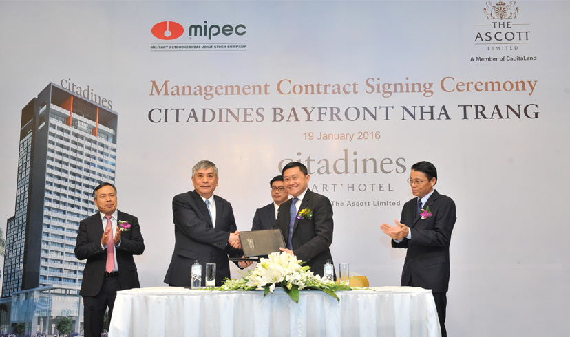 19/1/2016: MIPEC ký kết hợp tác chiến lược với The Ascott Limited – Tập đoàn quản lý căn hộ dịch vụ quốc tế hàng đầu thế giới. Tập đoàn Ascott quản lý, vận hành tổ hợp khách sạn và căn hộ dịch vụ Citadines Bayfront Nha Trang do MIPEC làm chủ đầu tư.