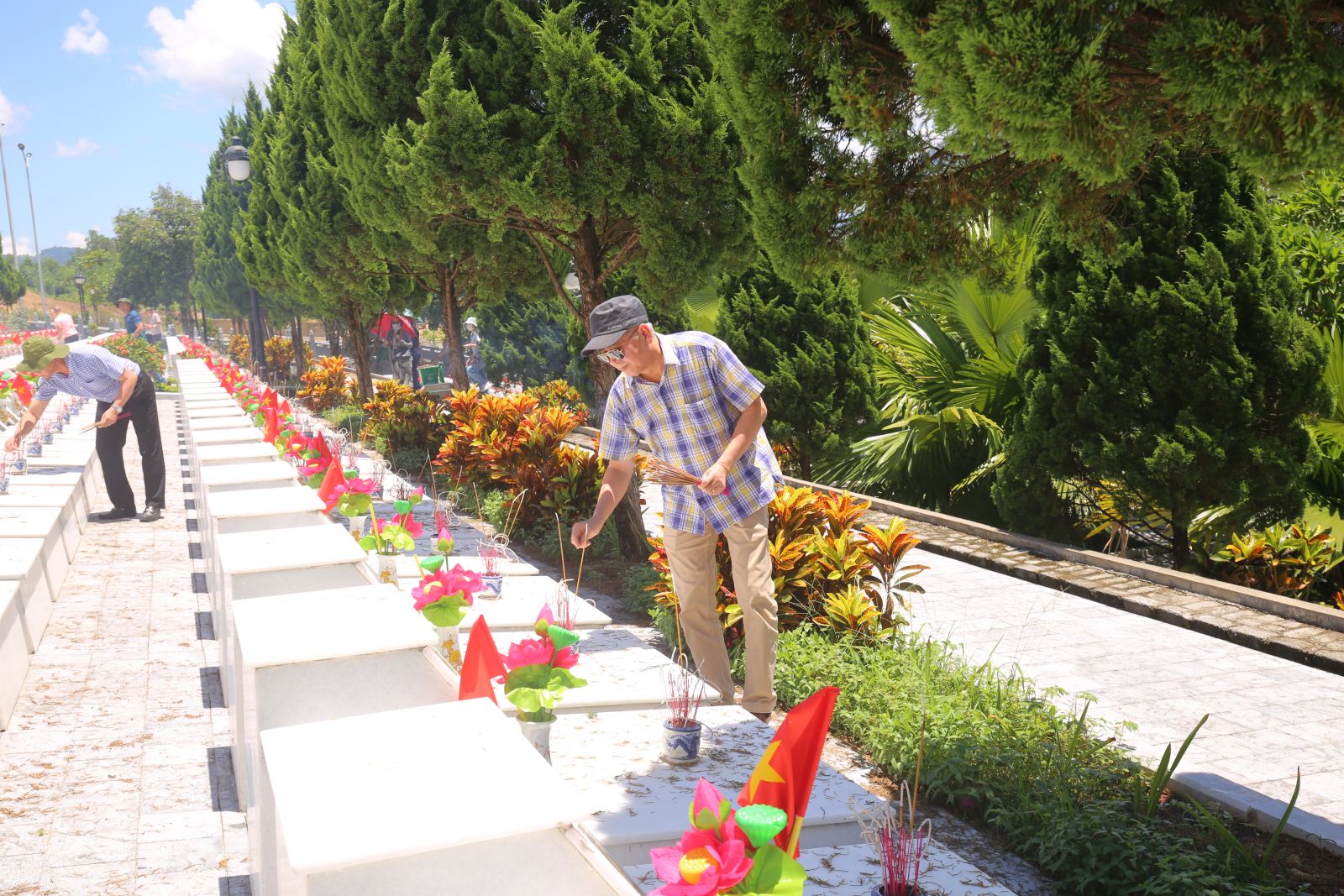 Trong không khí trang nghiêm, các thành viên trong đoàn công tác MIPEC không dấu nổi sự xúc động, thành kính dâng vòng hoa, thắp những nén hương lên đài tưởng niệm, lên từng ngôi mộ liệt sỹ, bày lòng biết ơn vô hạn và khắc ghi công lao to lớn của anh hùng liệt sỹ đã anh dũng chiến đấu, hy sinh cả tuổi thanh xuân của mình để bảo vệ từng tấc đất biên cương thiêng liêng của Tổ quốc. Xin các anh hãy yên giấc ngàn thu trong lòng đất Mẹ, hồn thiêng của các anh sẽ phù hộ cho non sông đất nước Việt Nam luôn yên bình!