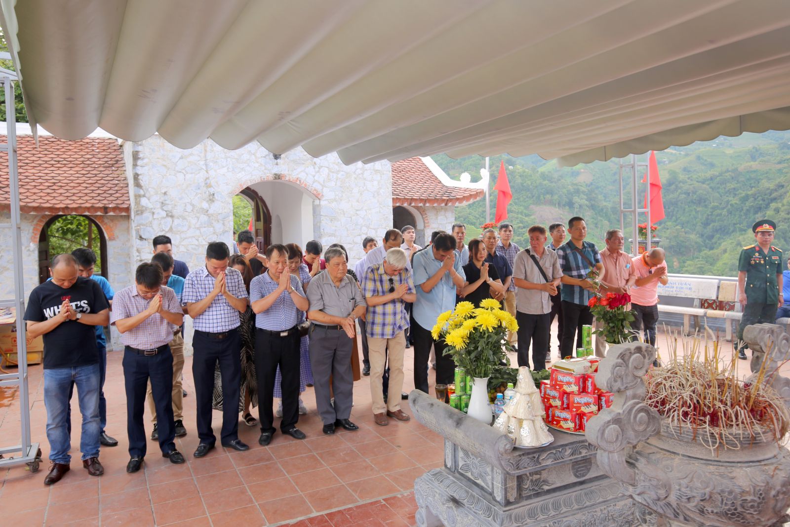 Đoàn công tác MIPEC dâng hương và chụp ảnh lưu niệm tại đền thờ Liệt sỹ trên cao điểm 468