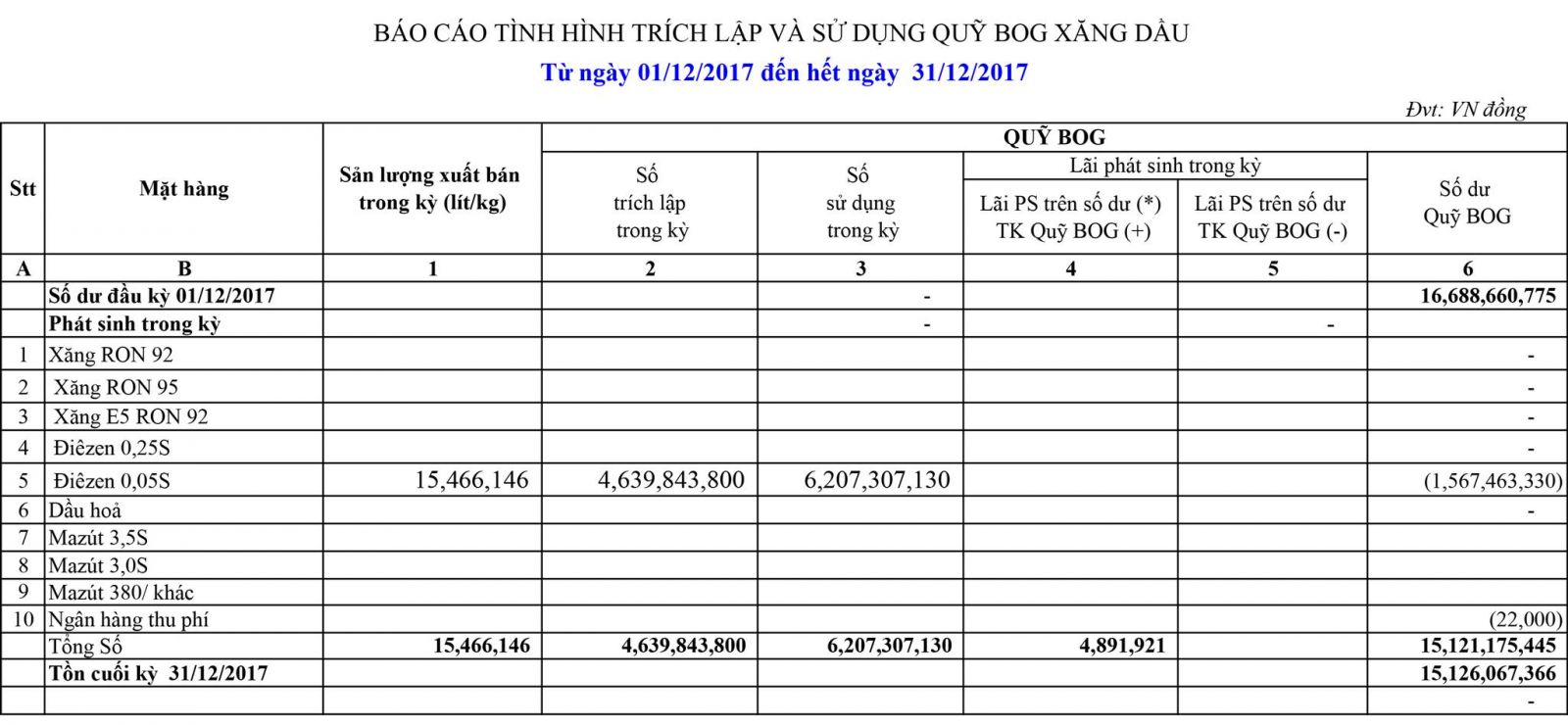 Báo cáo tình hình trích lập và sử dụng quỹ bình ổn giá xăng dầu của Công ty Cổ phần Hóa dầu Quân đội: