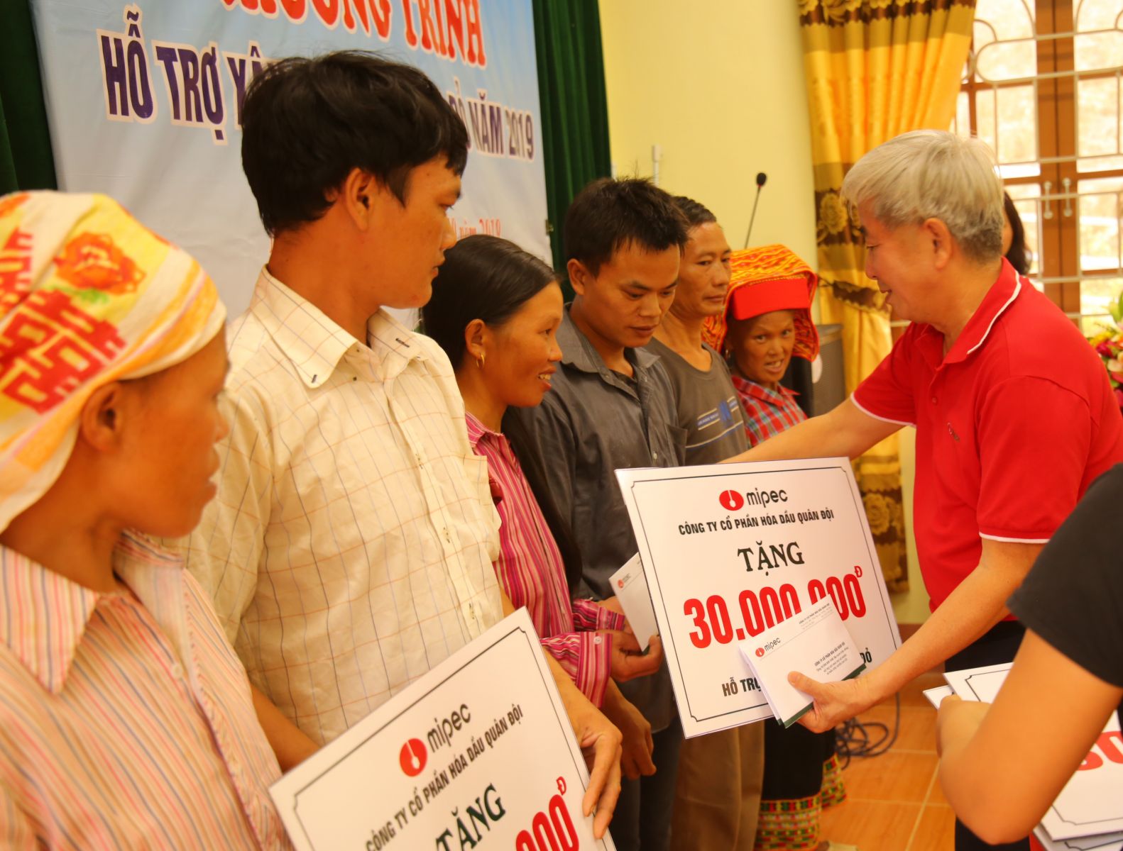 Tổng Giám đốc Dư Cao Sơn đại diện MIPEC trao tiền hỗ trợ xây nhà cho 04 hộ nghèo