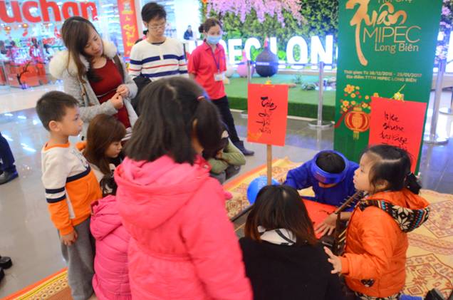 Trong suốt gần một tháng diễn ra Hội chợ xuân Mipec Long Biên (từ 30/12/2016 đến 25/1/2016), nhiều hoạt động thú vị, bổ ích và giàu giá trị truyền thống được tổ chức như Học viết câu đối đỏ, Gói bánh trưng đón Tết… giúp các em nhỏ và phụ huynh có những trải nghiệm tuyệt vời về tết truyền thống.