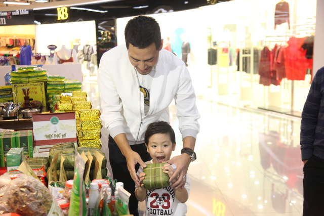Năm mới đang đến gần, MC Phan Anh muốn con trai có thêm nhiều ký ức đẹp về tết truyền thống, nên hai cha con đã cùng tham gia Hội chợ xuân tại TTTM Mipec Long Biên.