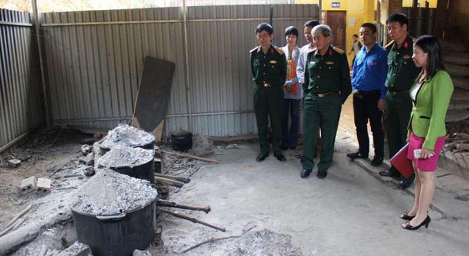 Các lãnh đạo Công ty Cổ phần Hóa Dầu Quân Đội đến thăm bếp ăn của học sinh