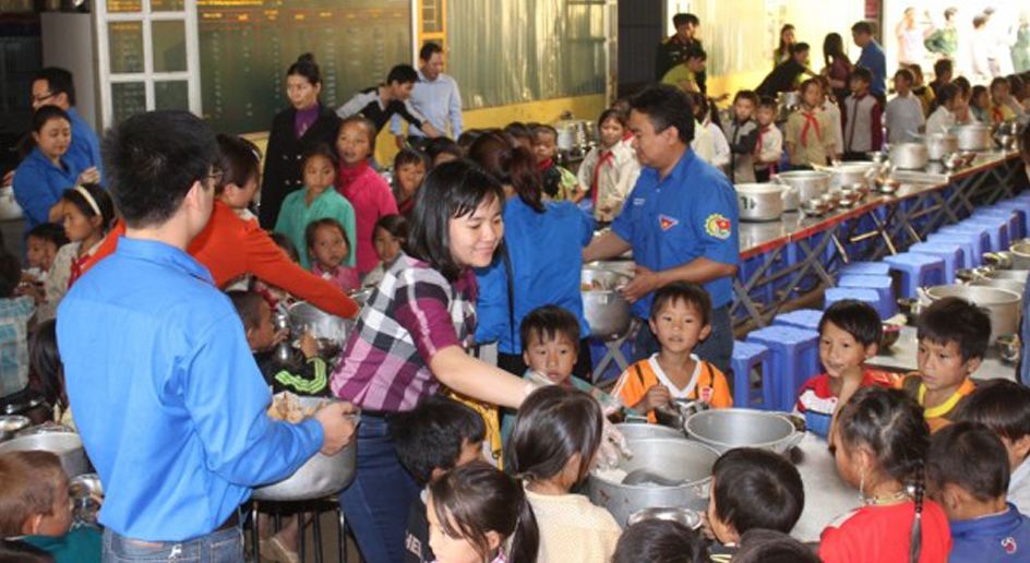 Bữa ăn trưa đầy niềm vui của các em học sinh khi đoàn tình nguyện của Mipec mang tới những đồ ăn tươi, ngon và dinh dưỡng từ miền xuôi