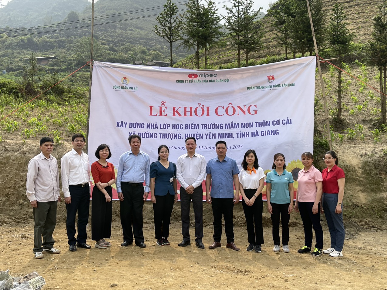 Trong ba ngày (13-15/04/2023) đoàn công tác thiện nguyện của Công ty Cổ phần Hóa dầu Quân Đội (MIPEC) đến thăm các em học sinh tại điểm trường thôn Cờ Cải (xã Đường Thượng, huyện Yên Minh, tỉnh Hà Giang). Trong dịp này, MIPEC đã khởi công xây tặng hai lớp học mầm non tại điểm trường thôn Cờ Cải với tổng giá trị 350 triệu đồng.