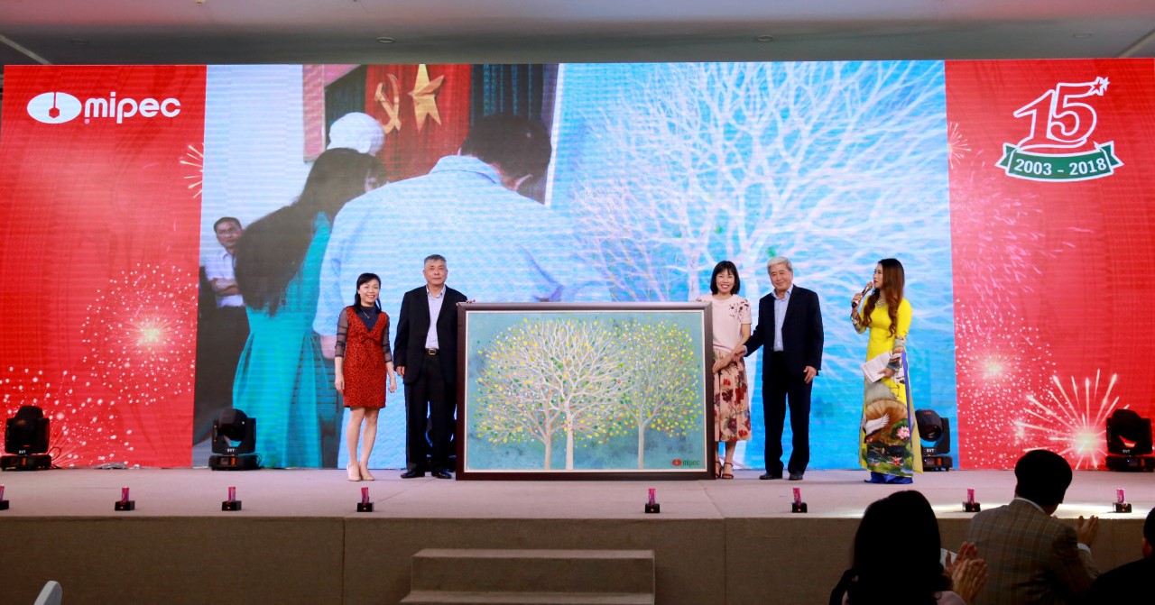 Cũng trong chương trình, Chủ tịch HĐQT và Tổng Giám đốc Công ty MIPEC đã nhận bức tranh “Cây MIPEC” được hoàn thành từ những dấu vân tay và chữ ký của toàn thể CBNV MIPEC. Bức tranh là lời cảm ơn chân thành của toàn thể CBNV MIPEC gửi tới Ban lãnh đạo công ty và thể hiện tinh thần của MIPEC: Đoàn kết – Sáng tạo – Nhân văn.