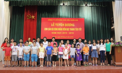 Sáng 05/8/2016, Công đoàn Công ty Cổ phần Hóa dầu Quân đội (MIPEC) đã tổ chức Lễ tuyên dương, khen thưởng học sinh là con cán bộ, công nhân viên Công ty đạt thành tích xuất sắc năm học 2015 - 2016.